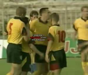 I’ve already got a couple of Lithuania football shirts. This lovely laced up Diadora effort as seen during their friendly with Brazil in 1996, and a more recent understated Hummel shirt from 2004. However, since completing the set of 211 FIFA national shirts I have been looking to improve my collection, and this shirt ticks two boxes in it being both match worn, and being an extremely rare design.