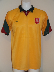The shirt was used during the 1994 Baltic Cup where Lithuania thrashed Estonia 3-0, and scraped a 1-0 win in the decider against Latvia. More importantly it was used when Lithuania played Israel in a friendly in 1996 and was swapped with Moshe Glam, and appeared for sale on eBay among a horde of Israeli sporting memorabilia.