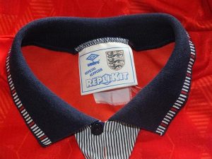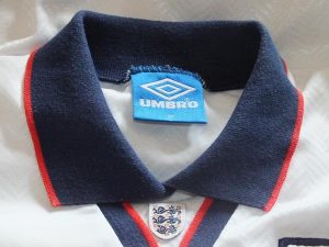 Another very rare match worn shirt here, and the first ‘new’ addition to the collection in quite a long time. This shirt design is the first to feature the new crest. I have yet to find a photo of this shirt from the match that it was wworn in, and you can see that the lettering differs sligthly from the match photo at the top. I have found photos from a youth game with the lettering matching, but this was from before the FA’s crest had been applied to the shirts.